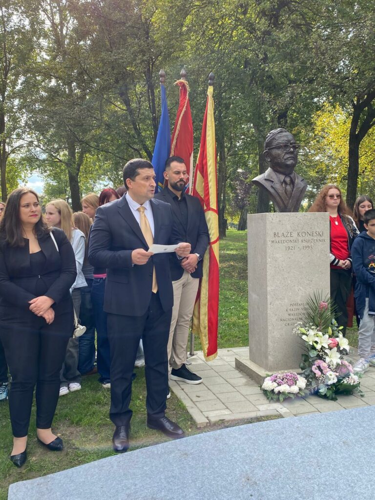U zagrebačkom parku Bundek, u subotu 11. listopada 2025. godine, u organizaciji Vijeća makedonske nacionalne manjine Grada Zagreba, otkrivena je spomen-bista istaknutom makedonskom književniku Blaži Koneskom. Ovim je Vijeće obilježilo svoj dan, 11. listopada, te se istovremeno uključilo u obilježavanje važne 80. obljetnice kodifikacije makedonskog književnog jezika, koja se tijekom cijele 2025. godine obilježava u Republici Sjevernoj Makedoniji. Postavljanjem spomen-biste Vijeće odaje počast Blaži Koneskom za njegove monumentalne zasluge u kodifikaciji makedonskog književnog jezika i razvoju makedonske književnosti. Otkrivanju biste prisustvovali su i učenici koji pohađaju nastavu makedonskog jezika i kulture prema modelu C diljem Hrvatske, koji su svečanost obogatili svojom izvedbom čitajući poeziju.