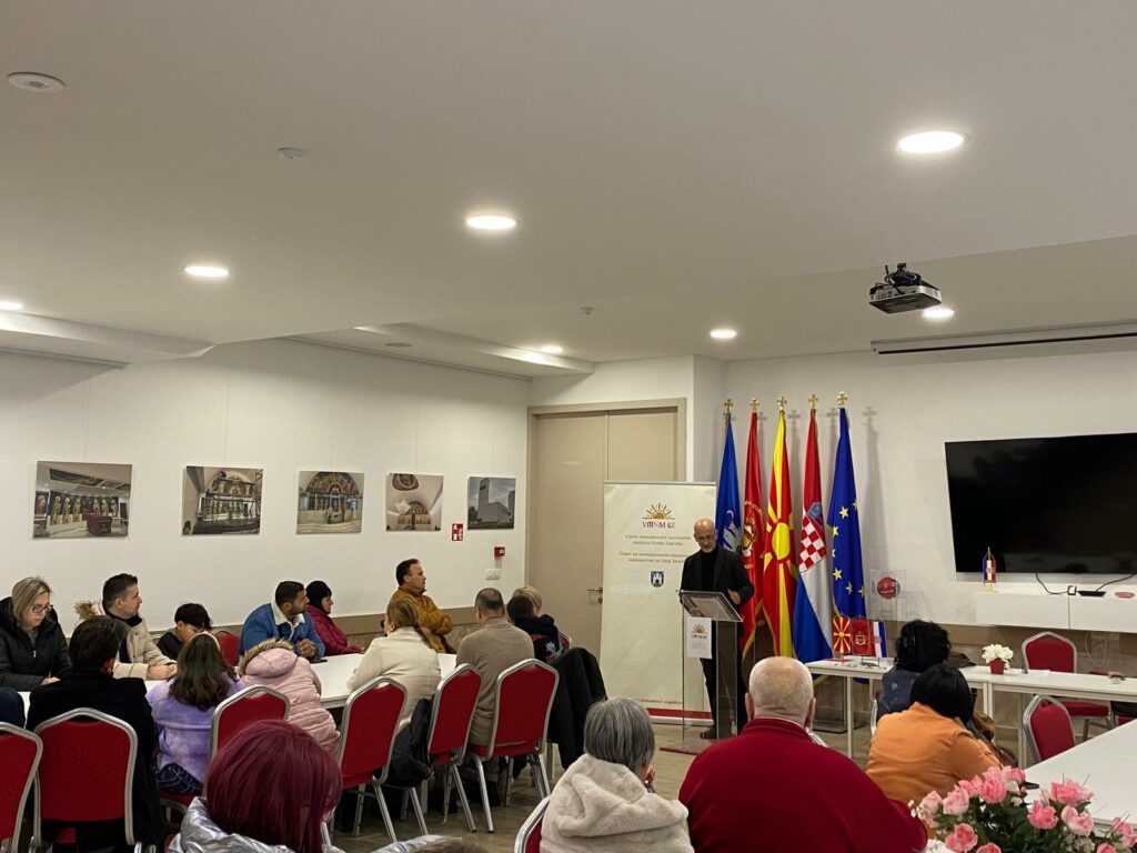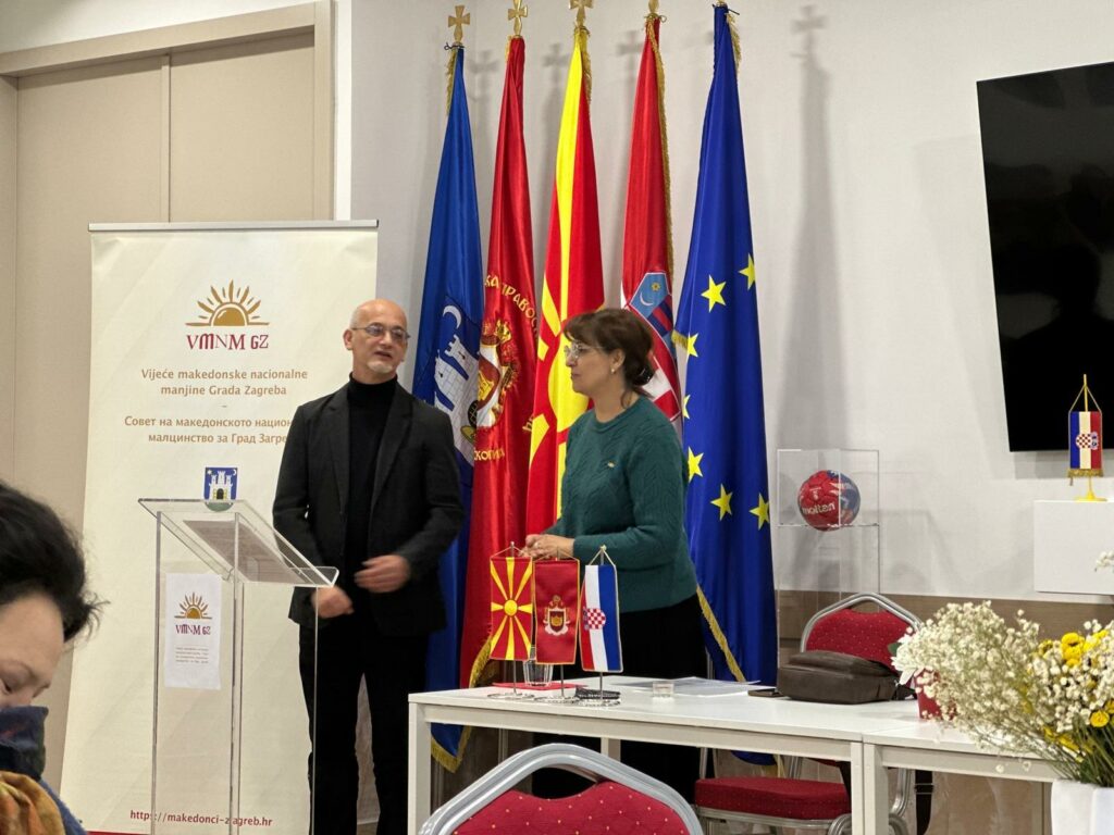 identiteta među Makedoncima koji žive u multikulturalnoj sredini kao što je Zagreb, osobitokada je riječ o značenju književnosti i posvećivanju pozornosti istoj.Među brojnim Makedoncima i članovima Vijeća, predavanju su prisustvovali direktoricamakedonskog KIC-a mr. Mimi Gjorgoska Ilievska, parohiski svećenik MPC u Hrvatskojprotojerej stavrofor Kirko Velinski, predsjednik MPCO „Sv. Zlata Maglenska“ NevenSukarovski te predsjednica MKD „Ohridski biser“ Ivana Brezovec.