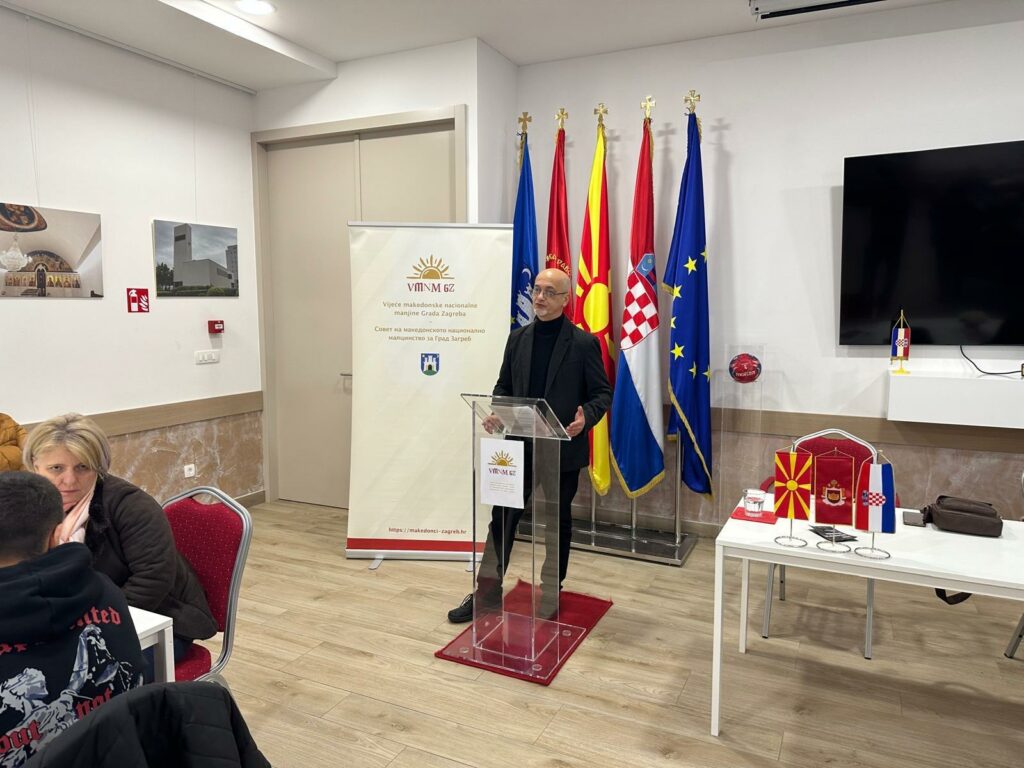 Во недела, на 23 ноември 2025 година, во организација на Советот на македонскотонационално малцинство за Град Загреб, се одржа предавање на тема „Појавата намакедонската книжевност и нејзините обележја. Предавањето го одржа ВладимирИлиевски, магистер по филолошки науки, кој во улога на предавач на јасен, стручен ипристапен начин ја претстави појавата, развојот и значењето на македонскатакнижевност, како и нејзините најважни карактеристики.Илиевски се осврна на историјата на македонската книжевност, историските околностиво кои се развива македонската книжевност и писмена традиција, нагласувајќи јанејзината врска со формирањето на македонскиот литературен јазик и со културнитепроцеси што ја обликувале современата македонска нација. Особено беше истакнатавредноста на македонската книжевност како темел на духовниот и културниот развој,бидејќи таа пред сè е создадена и се создава на македонски јазик – еден од најсилнитесимболи на националниот идентитет.Македонската книжевност е длабоко поврзана со македонските обичаи, религијата,уметноста, фолклорот и националните идеи, а нејзините дела во себе носат слоеви одколективното историско и културно искуство. Таа е неделив дел од образованието, одпроцесот на зачувување и унапредување на јазикот, како и од негувањето на културнатасамобитност на Македонците, и во татковината и во дијаспората.Предавањето поттикна продуктивен интерес кај пристутните за темата, што воконтекстот на целите на Советот на македонското национално млацинство, значењетона книжевноста и посветувањето внимание на истата е од исклучителна важност зазачувување на националниот идентитет меѓу Македонците кои живееат вомултикултурна средина каква што е Загреб.Меѓу бројните Македонци и членови на Советот, на предавањето присуствуваадиректорката на македонскиот КИЦ мр Мими Ѓоргоска Илиевска, парохискиотсвештеник на МПЦ во Хрватска протојерј ставрофор Кирко Велински, председдателотна МПЦО „Св Злата Магленска„ Невен Сукаровски и председателката на МКД„Охридски бисер„ Ивана Брезовец.