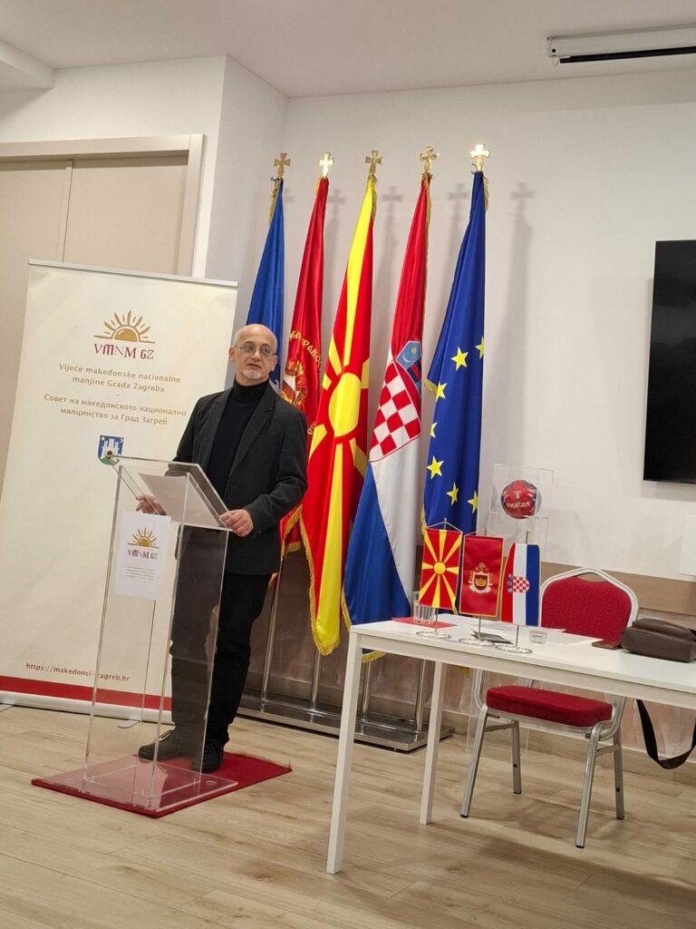 U nedjelju, 23. studenoga 2025. godine, u organizaciji Vijeća makedonske nacionalnemanjine Grada Zagreba, održano je predavanje na temu „Pojava makedonske književnosti injezina obilježja“. Predavanje je održao Vladimir Ilievski, magistar filoloških znanosti, koji jena jasan, stručan i pristupačan način predstavio nastanak, razvoj i važnost makedonskeknjiževnosti te njezina najznačajnija obilježja.Ilievski se osvrnuo na povijesne okolnosti u kojima se razvijala književnost i makedonskapisana tradicija, naglasivši njezinu povezanost s formiranjem makedonskog književnog jezikai kulturnim procesima koji su oblikovali suvremeni makedonski identitet. Posebno je istaknuovrijednost makedonske književnosti kao temelja duhovnog i kulturnog razvoja, budući da jeona, prije svega, stvarana – i danas se stvara – na makedonskom jeziku, jednom odnajvažnijih simbola nacionalnog identiteta.Makedonska je književnost duboko povezana s makedonskim običajima, religiji, umjetnošću,folklorom i nacionalnim idejama, a njezina djela nose u sebi slojeve kolektivnog povijesnog ikulturnog iskustva. Ona je neodvojiv dio obrazovanja, procesa očuvanja i unapređenja jezika,kao i njegovanja kulturne posebnosti Makedonaca, kako u domovini tako i u dijaspori.Predavanje je potaknulo produktivan interes kod prisutnih za temu, što je, u kontekstu ciljevaVijeća makedonske nacionalne manjine, od iznimne važnosti za očuvanje nacionalnog