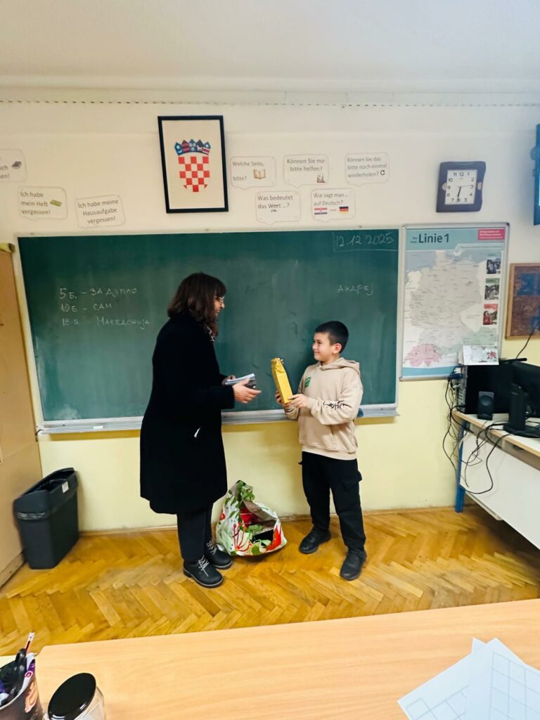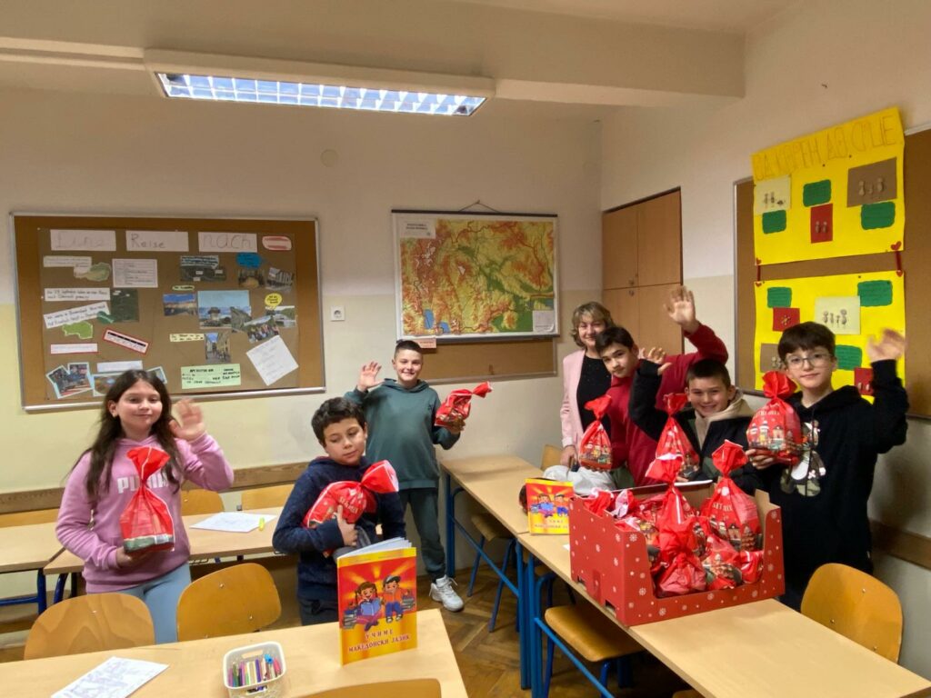 Radost sv. Nikole u učionicama makedonskog jezika___________________________Vijeće makedonske nacionalne manjine Grada Zagreba, u skladu s Programom rada za 2025. godinu, obilježilo je blagdan sv. Nikole darivanjem učenika koji pohađaju nastavu makedonskog jezika i kulture. Nastavu, odnosno učenike osnovnih škola „August Harambašić“ i „Nikola Tesla“, posjetili su potpredsjednica Vijeća Gordana Stojkov, predsjednica Zorica Velinovska te vijećnici Darko Radevski i Marko Kočevski, koji su tom prigodom razgovarali i družili se s učiteljicom Despinom Belčovskom Velinskom i učenicima. U ime Vijeća podijelili su im prigodne darove – slatke paketiće, unoseći blagdansku toplinu i radost sv. Nikole u učionice te pritom izmamili iskrene osmijehe i radost na licima učenika koji pohađaju nastavu makedonskog jezika i kulture. Dok je srednjoškolce koji pohađaju nastavu makedonskog jezika i kulture, Model C, u I. gimnaziji, Vijeće razveselilo kino ulaznicama za filmsku projekciju makedonskog filma „DJ Ahmet“.